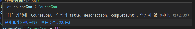 let courseGoal: CourseGoal = {}; // 에러