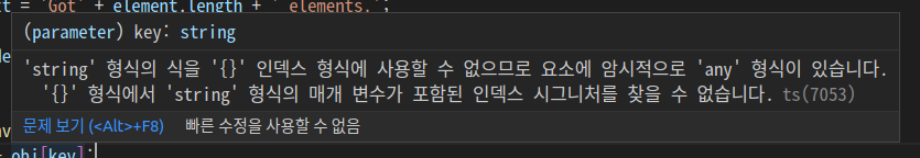 return 'Value: ' + obj[key]; // 에러